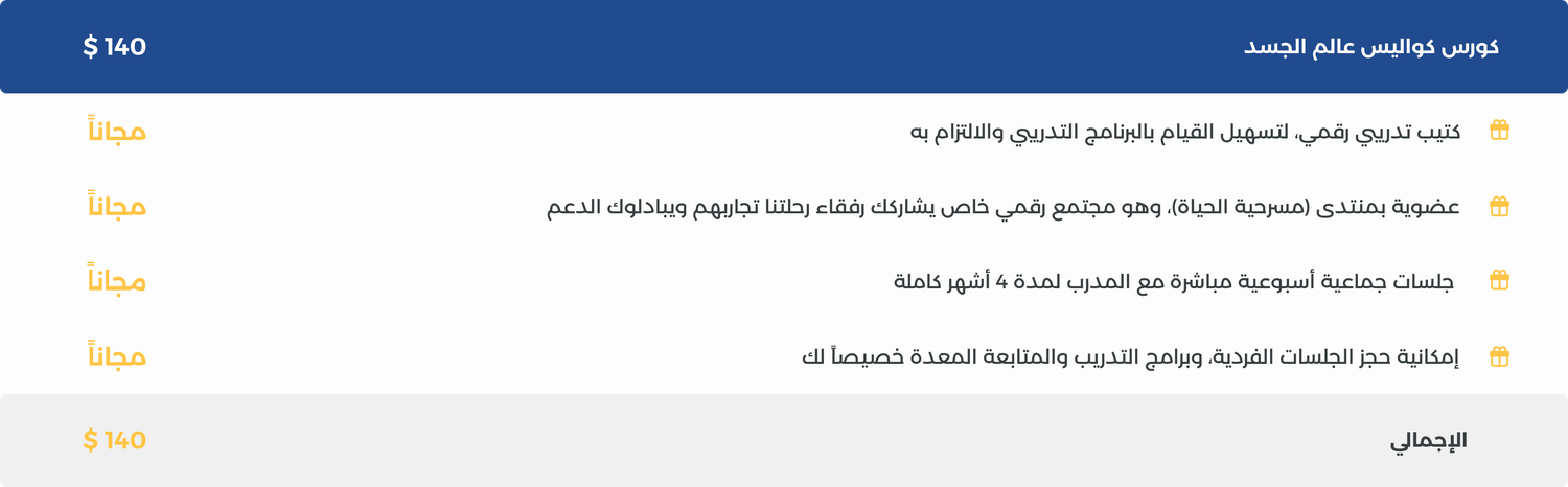 جلسات جماعية أسبوعية مباشرة مع المدرب لمدة 4 أشهر كاملة من تاريخ الاشتراك